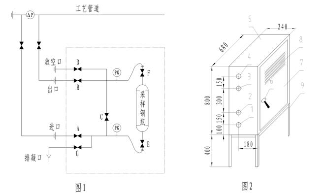 2、依次打開閥門A、B及鋼瓶兩端切數閥E、F,介質經鋼瓶循環(huán)采樣。