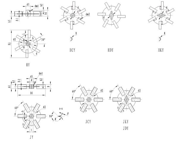 64、半圓弧對開圓盤渦輪式HDY    65、半圓弧可拆對開圓盤渦輪式HKY  66、箭葉圓盤渦輪式JY             67、箭葉可拆圓盤渦輪式JCY