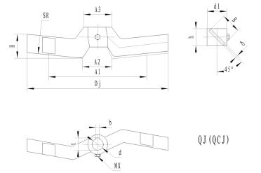 DJ | d | D1 | h | h1 | 螺栓d0 | b | t | N/n 不大于 |