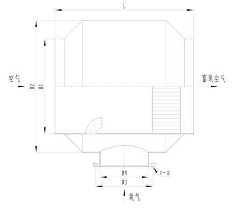 本產(chǎn)品由內(nèi)、外筒體,導(dǎo)流筒和混合單元組成(見下圖)。氧氣進(jìn)入兩筒體之間的空間后經(jīng)導(dǎo)流筒引入空氣流中實(shí)現(xiàn)初混,然后進(jìn)入混合單元,被多次切割分流,從管尾出來(lái)的已經(jīng)是均勻混合的富氧空氣。